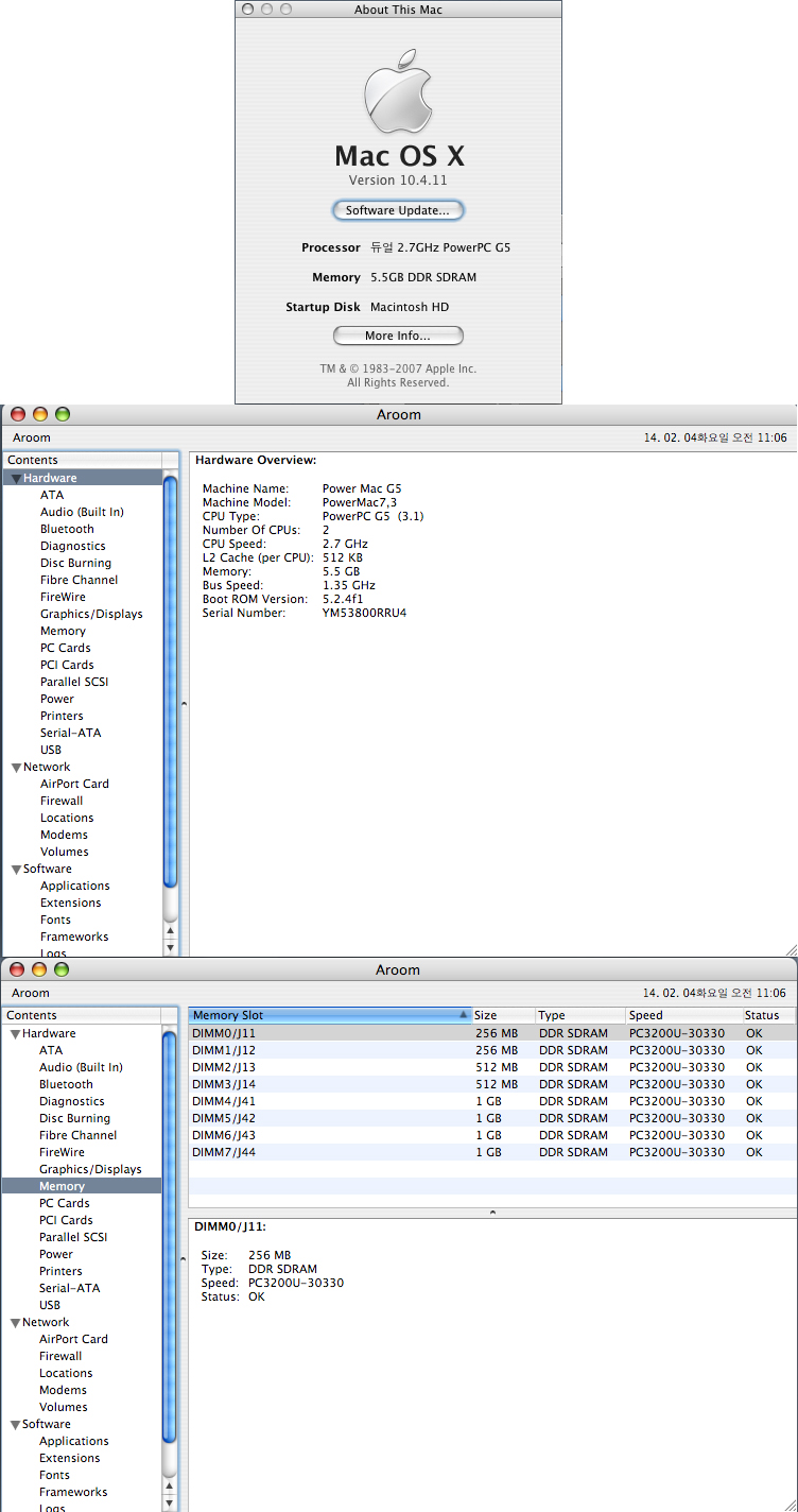 G5 듀얼 2.7GHz 5.5G Memory PowerPC 7.3 2005년 입니다.