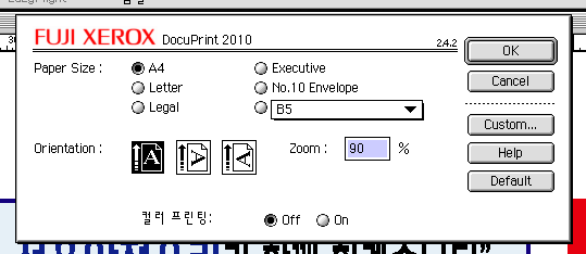 lee.m.k님께서 얘기하신대로 기존 시스템을 가지고 계신다면 한글시스템->프리퍼런스 에서 프린터 설정에 관련된 프리퍼런스 파일을 가져오셔서 대치하시는게 가장 좋으실꺼구요