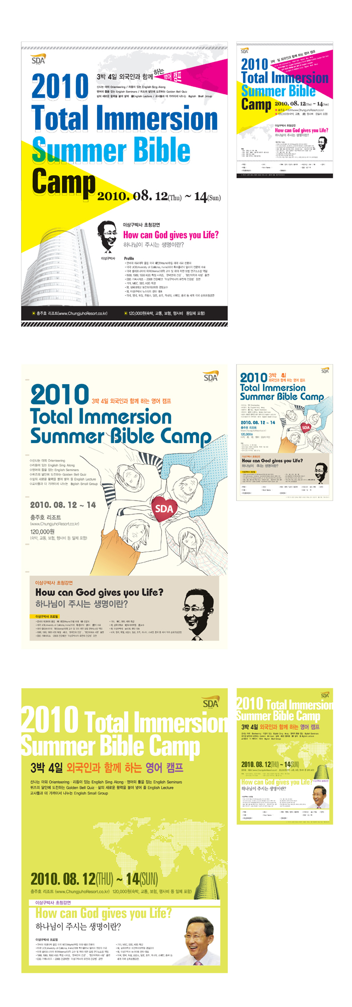 2번 시안에서 '2010 Total Immersion Summer Bible Camp' 요거 문구 어디서 많이 보던서체같아서.. 혹시 바우하우스 서첸가요? -.-;; 5개월전에 달력디자인 하다가 서체찾다가 눈에 들어오는 서체라 기억해뒀다가.. 언젠가 써봐야지 생각했던 서체였는데... 이렇게 나온걸 보니깐 멋지네요~ 바우하우스 맞죠? ^^;
