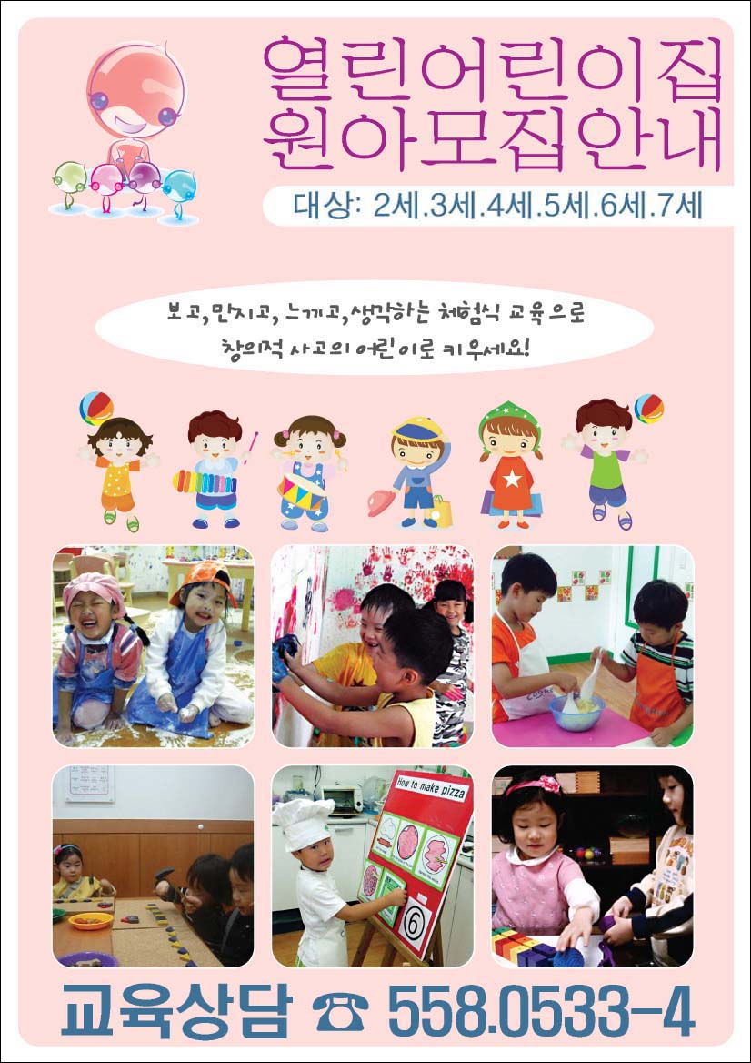대상:2세, 3세, 4세, ~~ 교육상담 558-0533~4 이것도 정리를 해 줘야할거 같은데요..