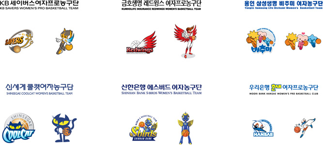 WKBL 각 구단 로고, 엠블럼, 마스코트 glass 일반 3 10462 2008.03.14 19:42 -0001.11.30 00:00 WKBL.sit (0byte) + 177 [여자프로농구단] KB 세이버스, 금호생명 레드윙스, 용인 삼성생명 비추미, 신세계 쿨캣, 신한은행 에스버드, 우리은행 한새